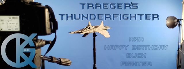 This model replica has been a thrill to photograph. Each angle simply looks menacing… and cool! I received this completed piece from Dan last year. Truth be told, it had started life many years ago as an actual cast from an original. The original cast was given to R.L. Bleecker to build and paint up as Buck’s Thunderfighter (SEEN HERE). It spent many years on display, and after it was borrowed to be on Display at different events (in order to suggest replicas would soon come from a Licensed Company), it eventually was returned months later with damage. At that time I thought we would change this one up. I then gave it to Dan Grumeretz to do so. Dan and I decided to make it the fantastic “Happy Birthday, Buck” Fighter…. which is Cornell Traeger’s early Starfighter seen in that very episode.